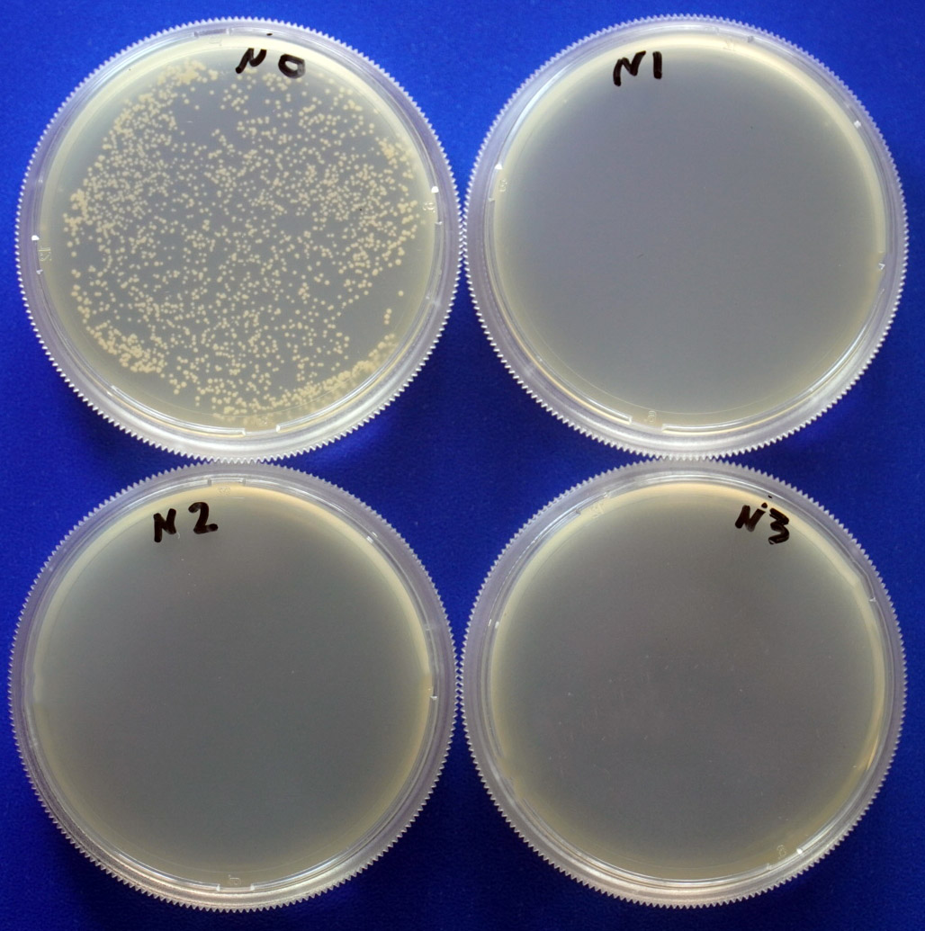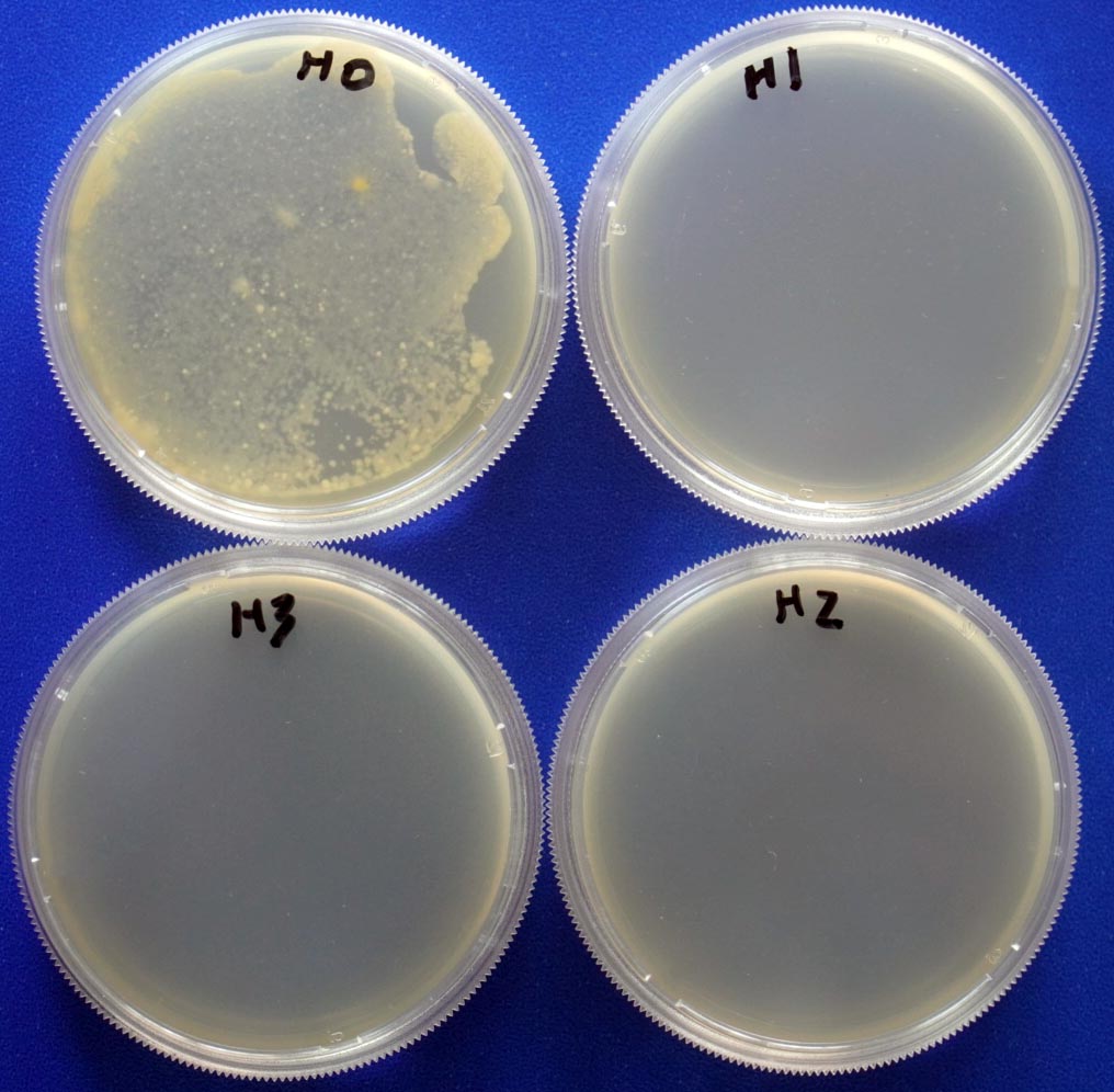 2.1. 對(duì)金黃色葡萄球菌的抑制效果(細(xì)菌) 培養(yǎng)基高壓滅菌后,冷卻并添加一定量的Buffpro 300后到平板。凝固后接種同樣菌量的金黃色葡萄球菌,37℃培養(yǎng)18h。結(jié)果如下圖: